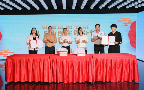 在黄埔区文广旅局的支持下,黄埔区图书馆与奥飞文创中心也进行了现场签约,在区图书馆的社会力量分馆体系上,充分发挥各自优势资源,并匹配奥飞文创中心打造中国动漫朝圣地的目标愿景,联合打造国内首家“动漫主题图书馆”。该馆将以图书与书吧、咖啡饮品、文创产业、活动展厅相结合,让图书馆成为一个集阅读、展览、文创、休闲等功能于一身的综合平台。
