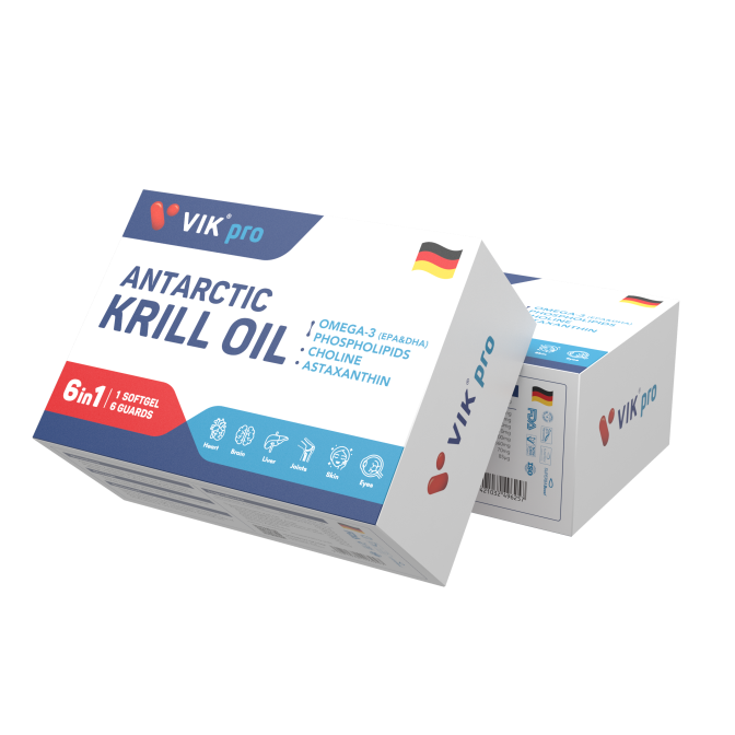 磷虾油本身具备多重营养价值,其中所含的海洋磷脂型OMEGA-3能够保障人体高吸收的同时清血管调血脂,其中的DHA与EPA两大成分还具备益脑护心的效用,因而磷虾油备受全球市场的一致热捧。相较于市场上的其他同类产品VIKpro采用德国顶尖科技,研发出56%超高浓度海洋磷脂的南极磷虾油,且实测海洋磷脂含量高达59%,使得其相较于VIK一代鱼油吸收率提升98%,VIKpro以尖端德国技术为全球消费者提供最纯粹的高端南极磷虾油产品。