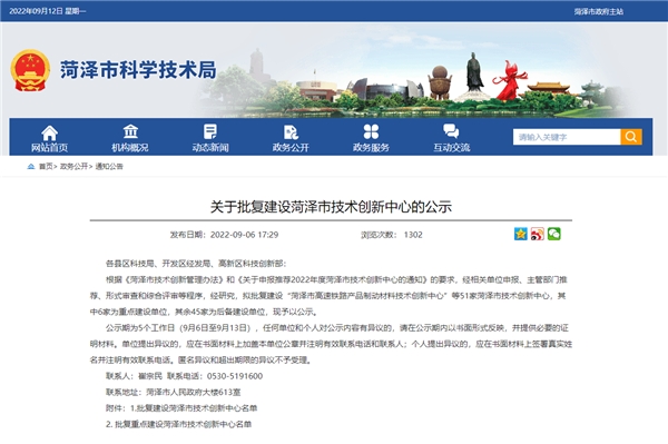 根据《菏泽市技术创新管理办法》和《关于申报推荐2022年度菏泽市技术创新中心的通知》的要求,经相关单位申报、主管部门推荐、形式审查和综合评审等程序,经研究,拟批复建设51家菏泽市技术创新中心,并予以公示。