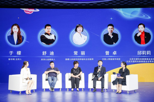 在其后的圆桌论坛环节,中英人寿首席市场官、星星梦想官曾卓,北京天使妈妈慈善基金会创始人、北京天使妈妈慈善基金会常务副理事长邱莉莉,首都儿科研究所呼吸科主任医师常丽,资深公益媒体人舒迪则以如何发挥保险优势,创新联合专业公益机构,聚焦关注儿童大病救助进行了对谈。