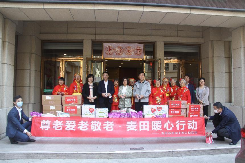 城阳区社会福利中心姜素玲院长热情接待并带领大家参观、看望正在接受照顾的老人,了解老人们的生活、身心健康等情况,仔细查看了老人们的生活条件和生活环境。麦田商旅党支部为城阳区社会福利中心捐赠面粉、大米、牛奶和早餐面包等生活物资,还为福利中心的老年秧歌队捐赠秧歌服装和旱船,为老人们提供更多的丰富多彩的精神文化生活,帮助老年群体老有所养、老有所乐,将党的关怀送到老人身边,让他们感受社会的温暖和新时代的美好生活。