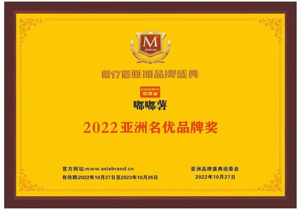 嘟嘟薯相信,薯类零食会是世界上最美好的食物之一,既能饱腹,又能让大家快乐。本次“嘟嘟薯”品牌斩获第17届亚洲品牌盛典“2022亚洲名优品牌奖”,代表市场和行业对健康营养的薯类零食品牌的重视与认可。
