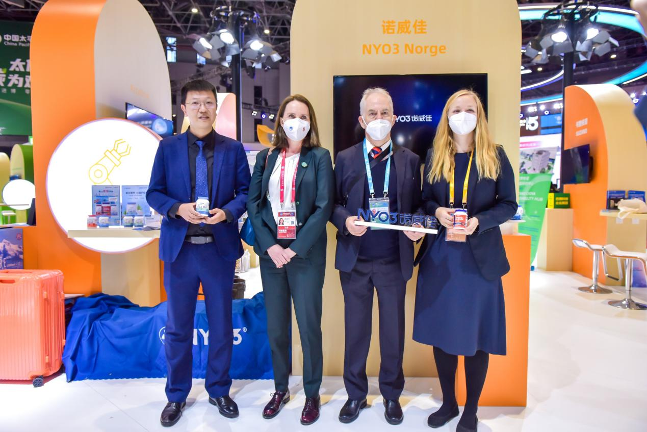 本次品牌升级融合NYO3中国地区的诺威佳授权,得到北欧创新中心的支持,并得到丹麦驻上海总领事魏鸣珂先生、国家会展中心(上海)总裁宁风先生、复旦大学北欧中心主任马维先生的共同见证。在创新展团现场,得到挪威驻华大使白思娜女士、挪威商务参赞Rolf先生的祝贺,也得到NYO3战略合作伙伴挪威AkerBioMarine的支持。