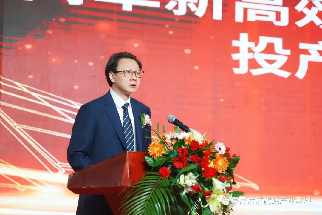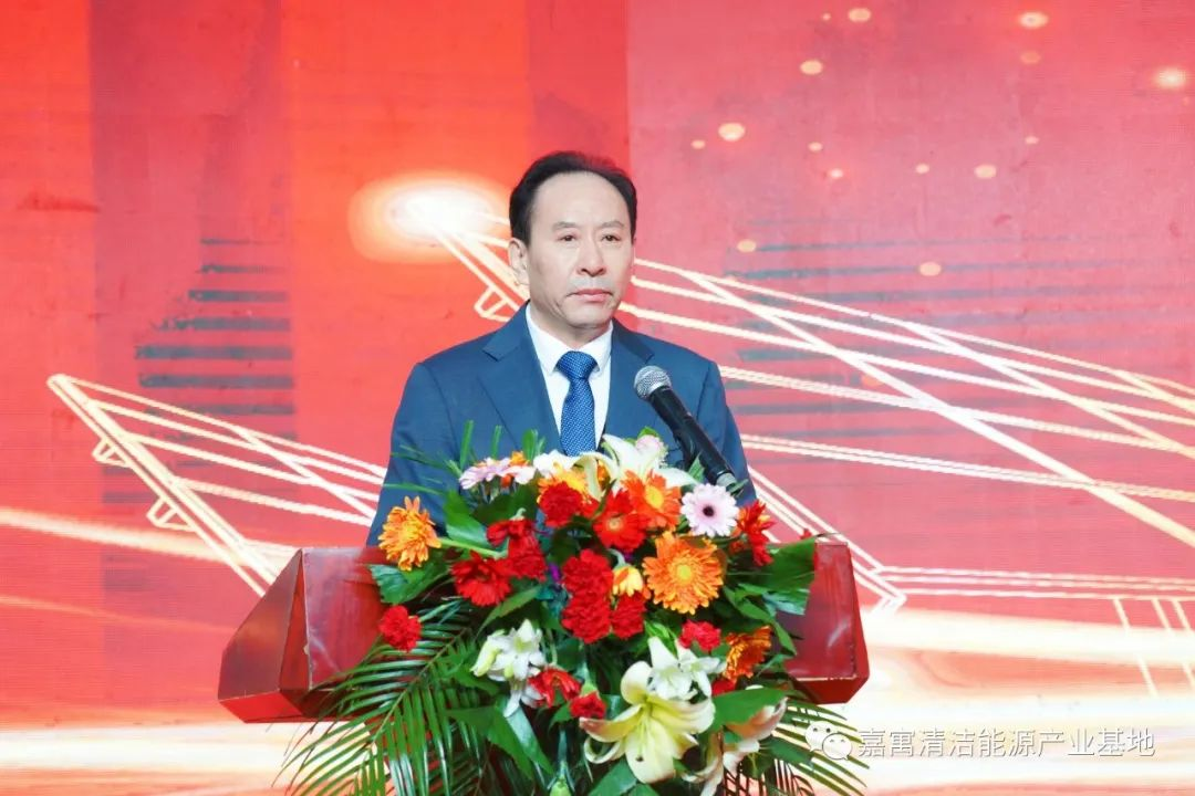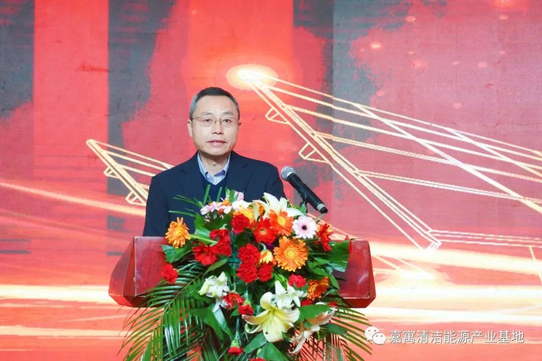 史岩代表华能新能源向嘉寓阜新高效光伏组件基地的竣工投产表示热烈祝贺,华能新能源股份有限公司与嘉寓集团在2021年达成战略合作伙伴后,成立混合所有制公司,务实深耕,秉持合作共赢、共同发展的思路,大力拓展新能源市场。目前达成合作及实施的项目,已近100万千瓦,形成了紧密的合作伙伴关系。