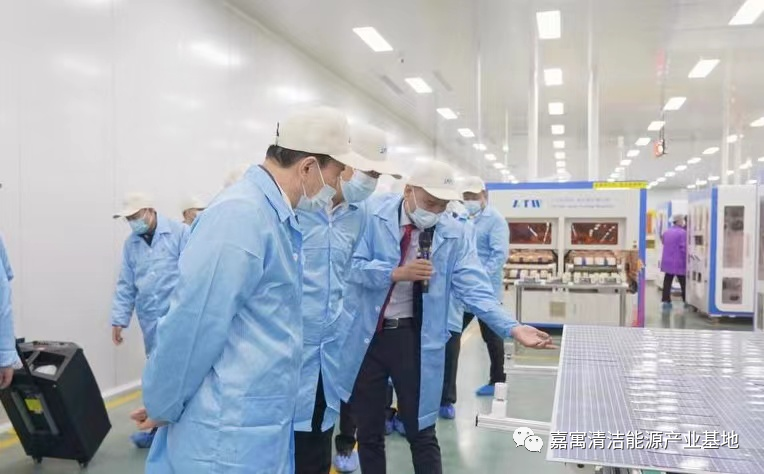 嘉寓阜新高效光伏组件基地(东北)首片光伏组件正式下线。随后,与会领导参观高效光伏组件生产车间。