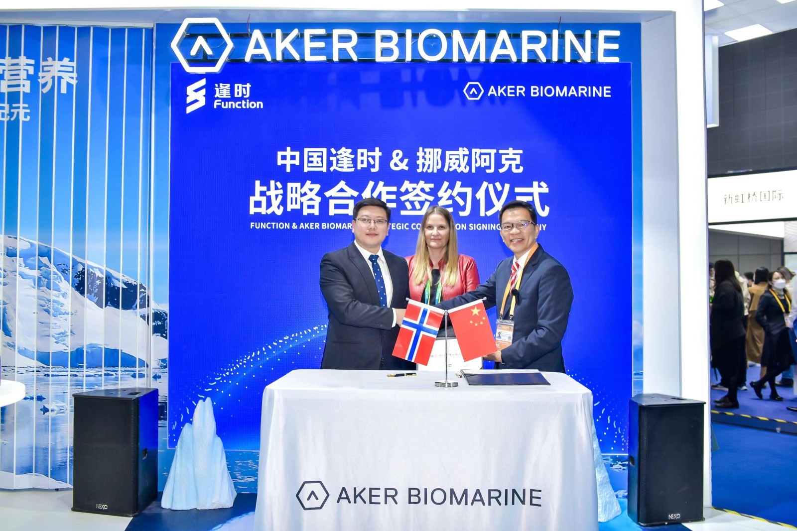 11 月 5 日-10 日,第五届中国国际进口博览会(下文简称“进博会”)在上海举行,众多世界 500 强和行业龙头企业齐聚进博会。逢时科技与挪威阿克海洋生物现场进行深度战略合作签约仪式,挪威王国驻华使馆商务处商务参赞/挪威创新署中国区负责人Rolf Almklov、挪威阿克生物亚太区总裁刘志通 、逢时科技总裁张洪燚等出席。