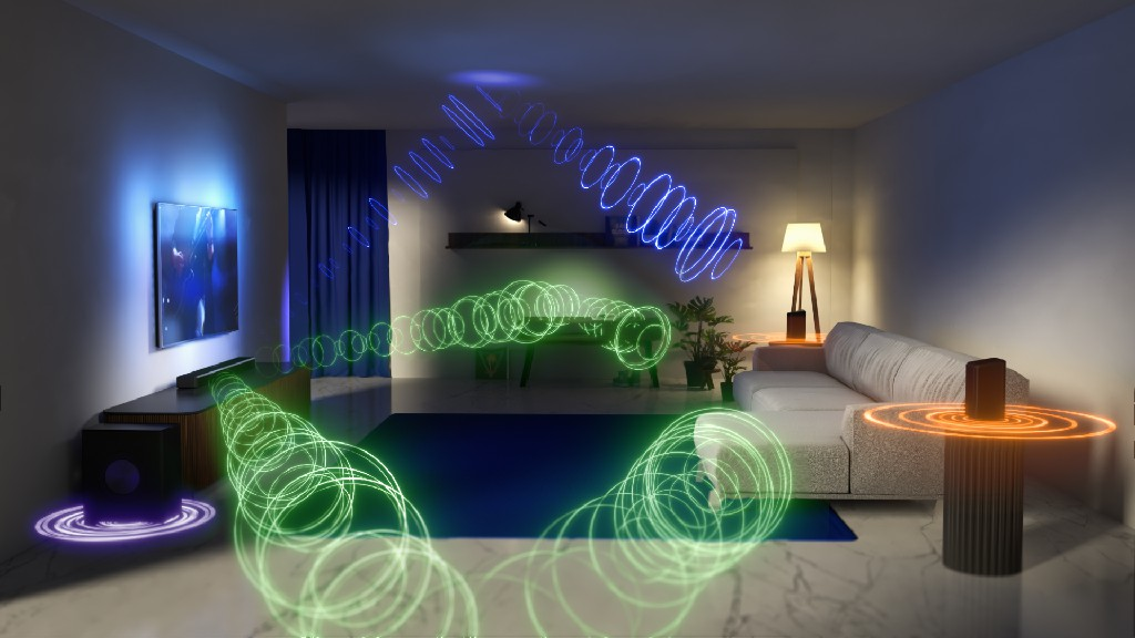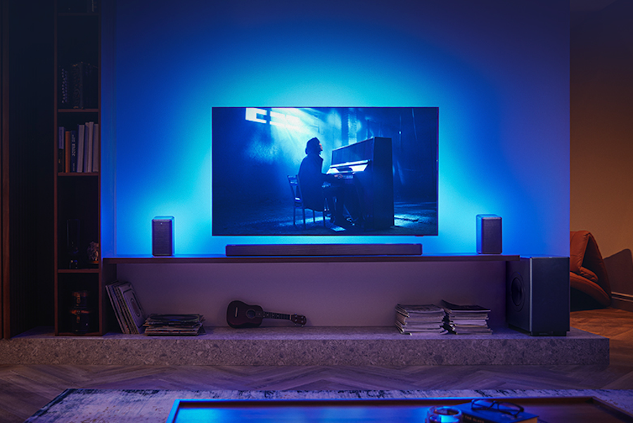 亮点三:FS1作为Fidelio One套装中无线音箱,独特的Ambilight环景光功能,可以与飞利浦高端“环景光”电视相结合,将发挥出1+1>2的强悍能量,电视画面将随着音乐节奏或电影情节,带来流动缤纷的光感氛围,打造出光影传奇特效。