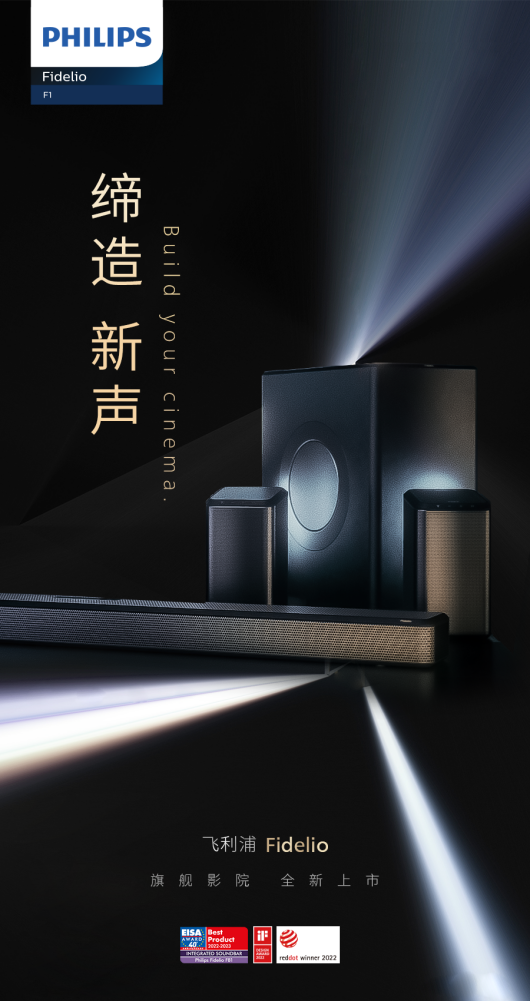 距离飞利浦旗舰回音壁B97发布已近3年,Fidelio作为旗下高端系列一直深受资深影音爱好者的推崇和喜爱。近日,飞利浦影音正式发布旗下新旗舰回音壁影院套装Fidelio One震撼上市。作为欧洲百年品牌,飞利浦影音每次推出高端产品都备受市场瞩目,更何况是旗下Fidelio高端系列回音壁产品线的重大更新,这套精心打磨的璀璨之作,将成为飞利浦影音皇冠上新的宝石,并再次为音响界带来全新冲击。飞利浦Fidelio系列作为飞利浦影音旗下的高端影音系列,以“音质、设计、体验”为三大基石,温暖而精准的音色,精美的设计,奢华的材质,轻松的用户体验,专为极致影音爱好者而设计。新品飞利浦Fidelio One 系列携三大创新:定制级扬声器、天花板级别12.4.4通道、打造光影传奇的环景光,再次向世界展示了品牌的研发优势。可以预见到这款产品将在高端音响市场,刷新家庭影音体验的新高度。毫无疑问,飞利浦影音将在2023年,再次为影音爱好者缔造新声。