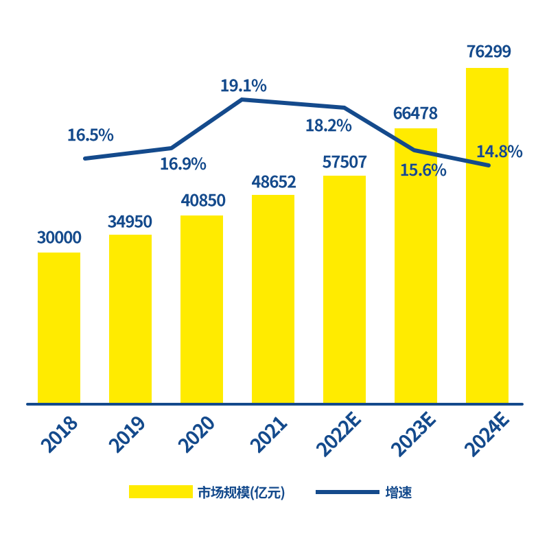 宏观背景来看,随着多胎生育政策的开放、生育休假制度的完善、住房支持以及税收优惠等一系列措施的发布,都在推动整个母婴市场向着更健康的态势发展,虽然出生率在下降,但母婴市场总规模在不断增大,预计到 2024年母婴市场规模将突破7万亿。