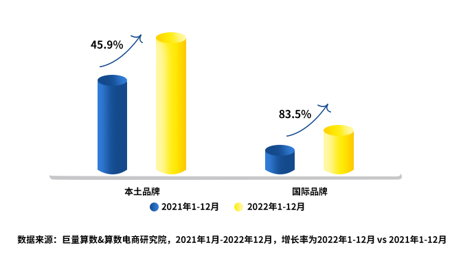 根据巨量算数&算数电商研究院,对比2022年1-12月和2021年1-12月,抖音母婴行业品牌短视频播放量国内品牌增长率为45.9%,国际品牌增长率为83.5%。母婴行业搜索内容量级同比增长93.4%。