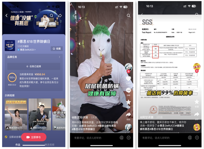 慕思发布的#慕思618世界除螨日#品牌活动得到了全网慕思新老用户的热烈响应,目前已近万名抖音用户上传了自己在家中进行除螨、吸尘的视频,话题累计互动量破亿,在抖音带动了一场家庭深度大扫除运动,掀起全网“除螨”热。