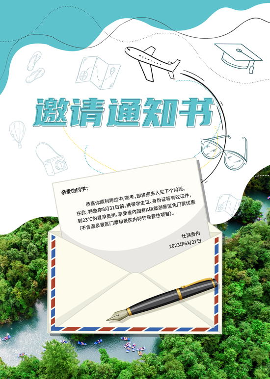 为此,“贵州好+”为广大学子策划了“避暑游”“研学游”和“城市打卡游”三条主题路线,带领大家感受贵州山川美景的同时,体验贵州的红色文化、少数民族文化、城市潮流文化。话不多说,让我们一起来看看!