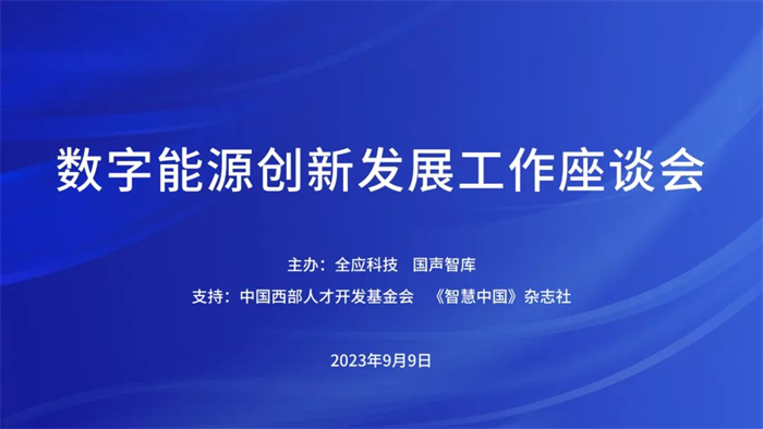 9月9日,由全应科技和国声智库主办,中国西部人才开发基金会、《智慧中国》杂志社支持的数字能源创新发展工作座谈会在北京举行。中国西部人才开发基金会理事长丁文锋,中国西部人才开发基金会副理事长兼秘书长马景,《智慧中国》杂志社副总编辑赵嫣艳,国声智库执行主任徐蕴峰,国声智库副主任张永会,全应科技董事长夏建涛等参加座谈会,就数字能源创新发展进行深入座谈交流。