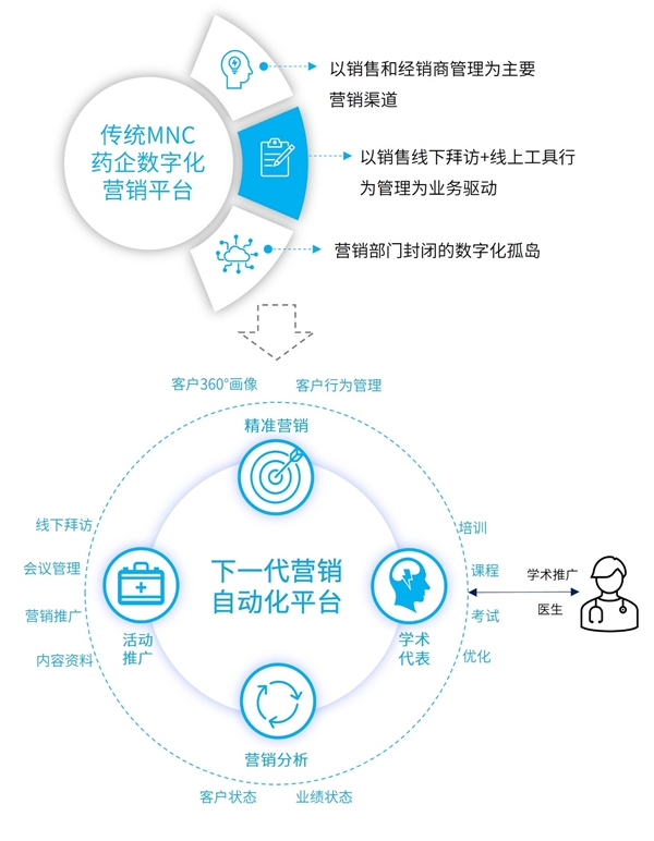 传统医药销售模式需要新模式、新战略、新平台打破增长瓶颈,破除发展梗阻。全链路的协作模式,需要以 “医生为核心,以学术推广为业务驱动,赋能医药营销全链路协作”的平台是整体行业破局的关键所在。