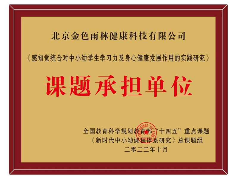 近日,由金色雨林承担科研的教育部“十三五”教育科学研究项目重点课题子课题《儿童感觉统合与心理健康(能力)体系建设研究》历时两年多项目建设,经《健康学习建设》总课题组成果鉴定,顺利结题。