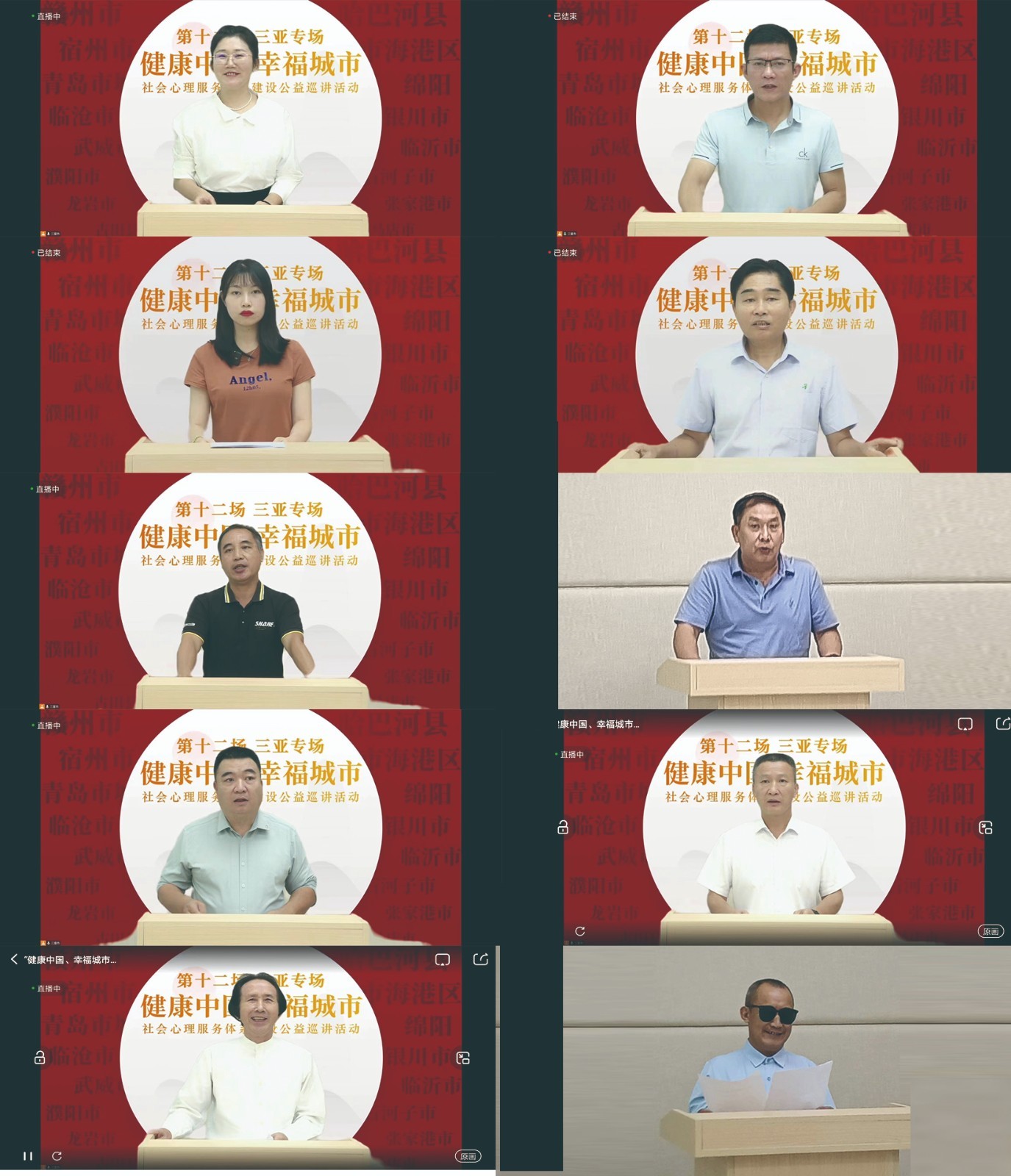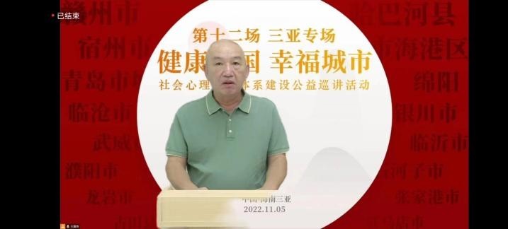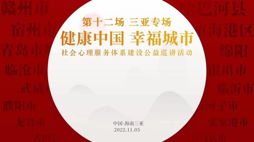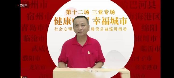 三亚深秋阳光明媚,鹿城大海涛声澎湃。三亚别名“鹿城”,“鹿”象征着健康、平安、幸福。11月5日,“健康中国·幸福城市”全国社会心理服务体系建设公益巡讲活动第12站三亚专场成功举办,线上观看热度达到约20万,获得较好效果!