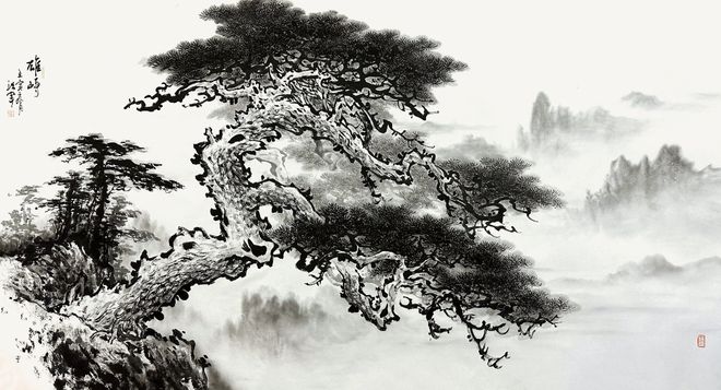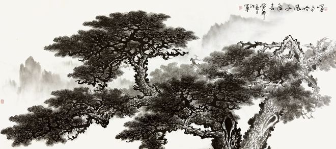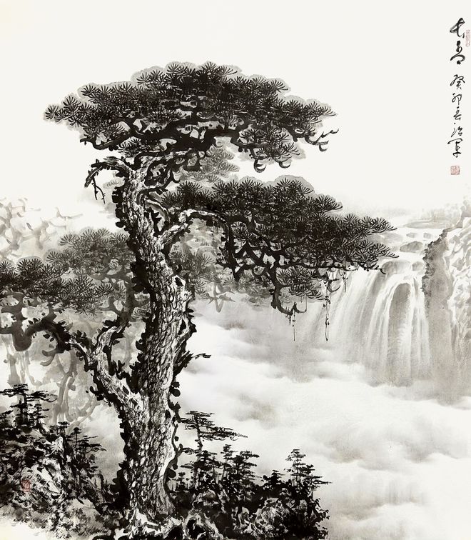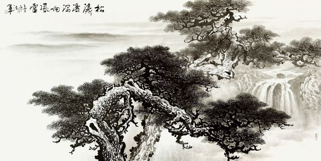 童治军松画作品《大壑松风》 童治军松画作品《松涛瀑写响风雷》 童治军松画作品《长...