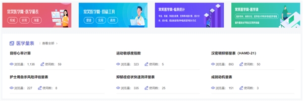 常笑医学网量表工具收录超过600个常用与罕见医学量表,涵盖内科、儿科、外科、妇产科、重症医学科、骨科、精神科、耳鼻咽喉头颈科等16个科室。大多数量表获得了授权,内容权威丰富,帮助临床医生节省了大量时间。