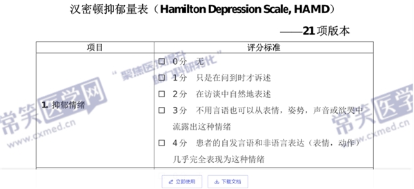 如今量表的使用已经拓展到了各个科室和领域,不仅是临床医生的好帮手,而且是医药工作者发表论文搞科研的有利工具。想体验更多优秀的医学量表,记得收藏常笑医学网。