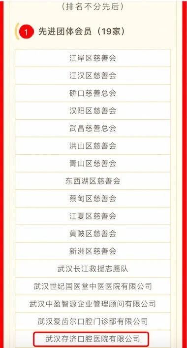 近日,为表彰先进,树立榜样,弘扬慈善精神,武汉市慈善总会对2022年度“先进团体会员”“优秀个人会员”“突出贡献单位”“先进慈善基金单位”公开通报表彰。武汉存济口腔医院获得“先进团体会员”荣誉称号,副处长易倩荣获“优秀个人会员”荣誉称号。
