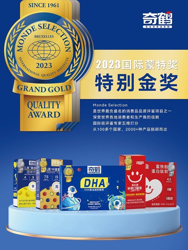 奇鹤旗下王牌大单品天选之藻DHA荣获特别金奖,奇儿亮叶黄素酯态液包和笑脸铁补铁口服液斩获金奖,奇儿食果蔬鸡内金和富铁胶原蛋白肽软糖摘得银奖。这不仅是对奇鹤产品品质新一番的印证与肯定,还是奇鹤品牌向国际跨越的一次见证。