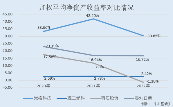 同期,光格科技同行业可比公司理工光科的加权平均ROE分别为2.69%、2.73%、2.42%;科汇股份的加权平均ROE分别为17.58%、11.88%、-1.30%;容知日新的加权平均ROE分别为23.19%、16.94%、16.72%。