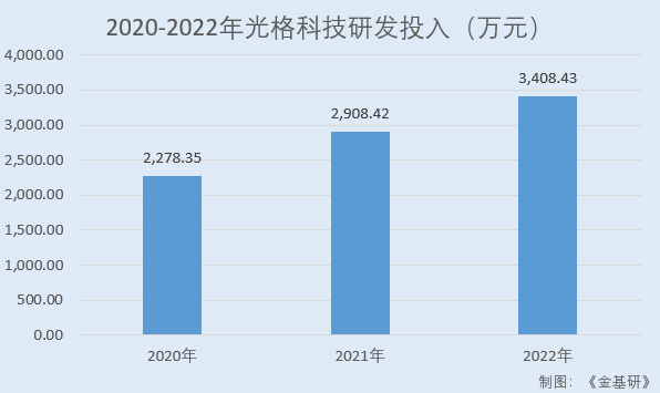 2020-2022年,光格科技研发投入金额分别为2,278.35万元、2,908.42万元、3,408.43万元,占营业收入的比例分别为11.69%、10.39%、11.33%。