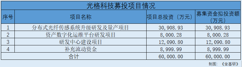 此番上市,光格科技拟募集资金6.00亿元,分别用于“分布式光纤传感系统升级研发及量产项目”、“资产数字化运维平台研发项目”、“研发中心建设项目”、“补充流动资金”。