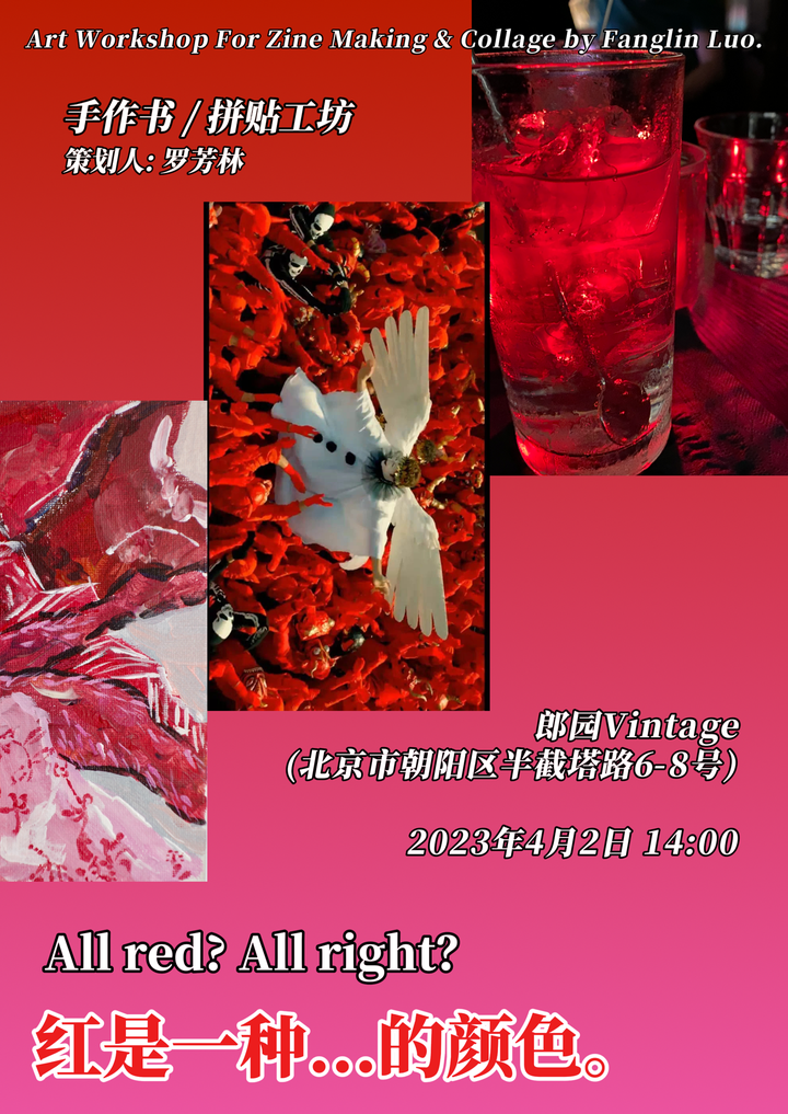 在北京图书市集的最后一天,艺术家罗芳林于郎园 Vintage 举办了 「红是一种……的颜色」艺术拼贴与手作书工作坊。