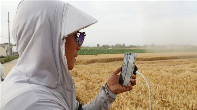 烈日当空,金色的麦浪翻滚。田埂上,一位年轻人蹲着身子,筷子挑起裹满浓郁芝麻酱的凉皮,边大口吃着边对着手机直播:“老铁们,焦作这片地已经拿下。看,这就是最真实的田间地头,人间烟火!”直播间弹幕飞滚,互动热烈。他抹了把额角的汗珠,扬声招呼身后其它机手:“大伙儿下来歇口气!吃完这口,咱一鼓作气把剩下400亩收完!”