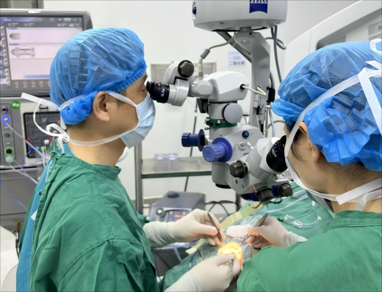 考虑到病情危急,医院立即启动眼科急诊绿色通道。从术前检查、手术方案制定到手术室协调,各个环节紧密衔接。当天下午,王先生就被推进了手术室,叶波院长团队为王先生实施了"微创玻璃体切割联合视网膜复位术"。手术需要在眼球表面建立三个不足1毫米的切口,切除病变玻璃体,用激光封闭视网膜裂孔,最后注入硅油支撑复位。经过1个多小时精细操作,脱离的视网膜成功复位。
