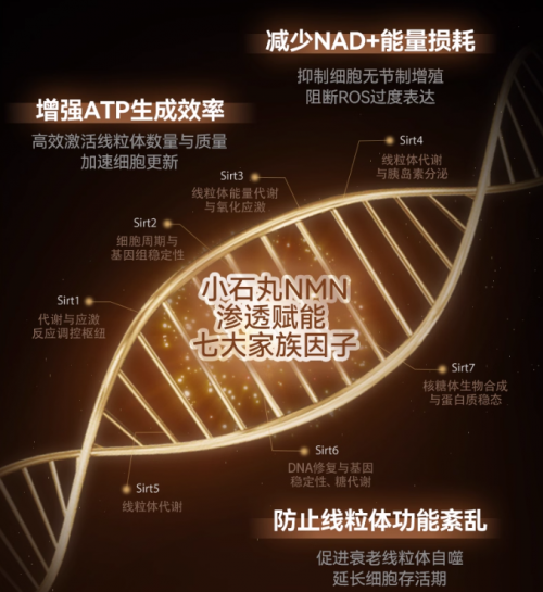 小石丸NMN的核心优势体现在其独创的靶向清除渗透技术。β-NMN能够精准激活人体七大SIRT因子,这些被称为"长寿基因"的关键蛋白直接调控着细胞的衰老进程。同时,灵芝多糖成分能够深度渗透细胞膜,协同清除炎性代谢废物,形成"清除+修复+激活"的完整作用链条。