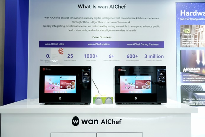 万得厨不仅在智能厨房产品和系统层面持续突破,其产业布局也在快速扩展。目前,万得厨的核心战略产品主要涵盖两大方向,面向家庭场景的万得厨烹饪智能体wan AIChef ultra,集成营养分析、健康数据采集与个性化菜谱生成,帮助用户实现更科学的日常饮食管理,真正重新定义家庭健康膳食;以及面向商用场景的万得厨共享站wan AIChef station,其搭载YINGZI OS的产业级AI智能设备,能够实现“多人并发供餐”和“24小时全自动”服务,重构高流量场景下的餐饮生态。这两大核心战略产品在应用场景上各有侧重,共同构建起万得厨的生态闭环。