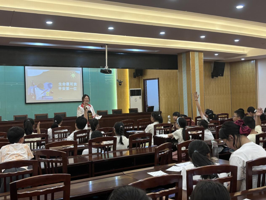 图为“安全自护我知道”课堂上,成员与同学们互动提问。 徐梦真 供图