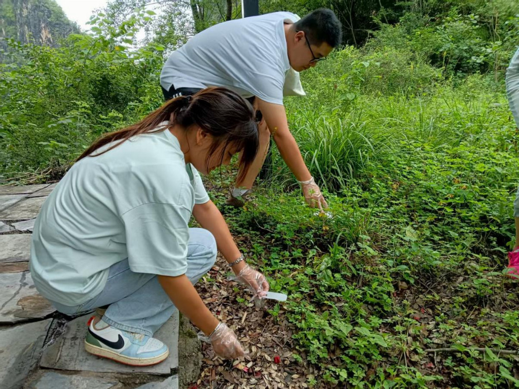 理念在于倡导,更在于行动。7月16日,酷暑难当,团队8名队员毅然拿起夹子、垃圾袋,走进板岩镇老社区的背街小巷,开展“弯腰行动”洁净家园活动。队员们分工协作,无惧烈日炙烤与蚊虫叮咬,耐心地弯腰捡拾角落的塑料瓶、烟头,清理草丛中的枯枝败叶,并对收集的混合垃圾进行初步分类。夹子与垃圾袋碰撞的声响,仿佛一首独特的“环保进行曲”。经过两个多小时的奋战,共清理垃圾12袋,让2000多平方米的社区角落焕然一新。