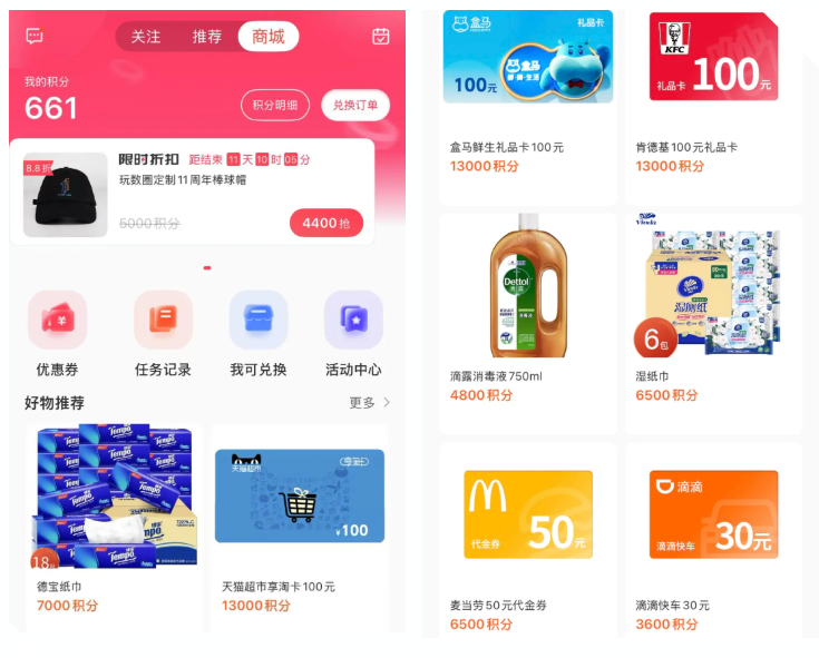 实用优惠:商城折扣券、周边盲盒