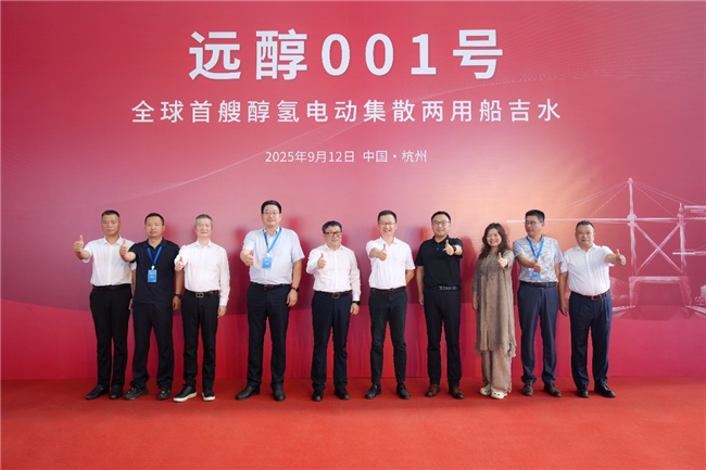 2025年9月12日,搭载远程醇氢电动技术的全球首艘醇氢电动集散两用船“远醇001”,在杭州钱航船舶修造厂正式吉水。这是醇氢电动在航运应用上的重大突破,也是醇氢电动技术从陆地走向水域的里程碑事件,充分彰显了“车-船-港-能”一体化协同示范效应,对于进一步推动醇氢液态能源规模化应用,保障我国能源安全有着重大意义。