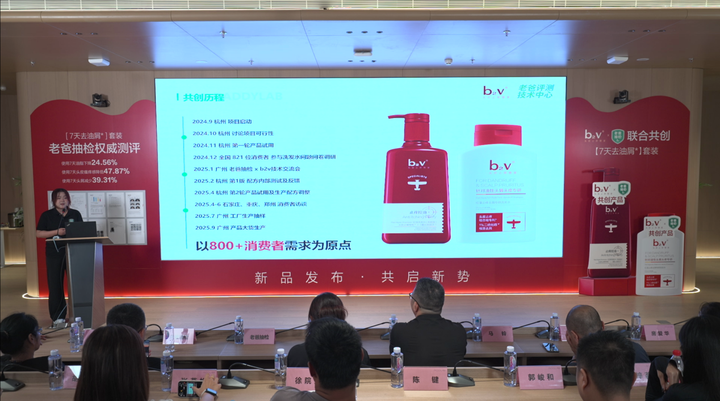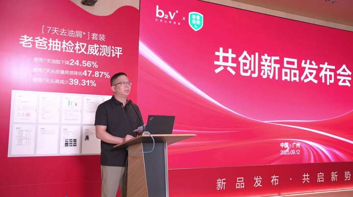 9月12日,专注于头皮油痒屑领域的b2v品牌在广州举办新品直播发布会,正式推出与老爸抽检深度共创的“7 天去油屑套”。这个套组产品是双方全链路合作的首个洗发水成果,以“7天见效”的硬核功效,为众多有油痒屑困扰的消费者提供高效解决方案,同时开创了洗护CP新时代。