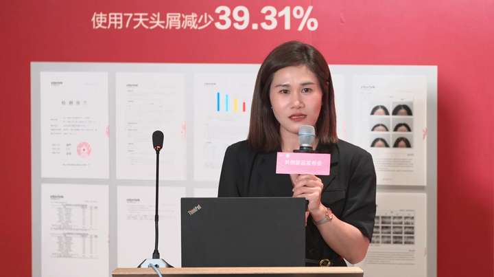 “‘7 天去油屑套’是集团的战略主推品。”b2v市场部负责人姜娜在发布会上介绍新品战略时介绍,“7 天去油屑套”不是单一产品,也不是洗护或者洗沐的普通套组的组合,是由小红帽和红藻瓶两瓶承担不同角色的洗发水组成的CP,“两个洗发水一搭配,让油痒屑问题解决得更快速更根源。”