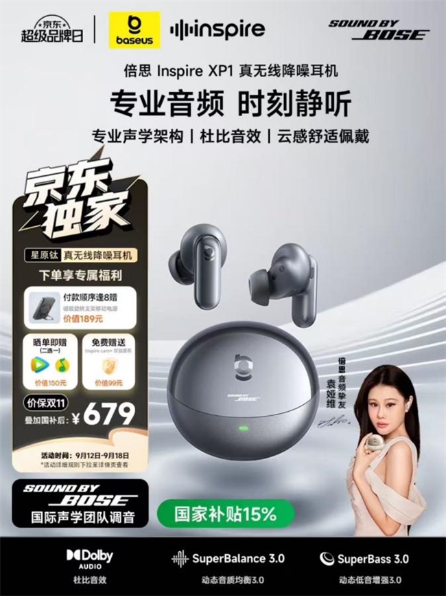作为双方首次联手打造的超级品牌日,倍思与京东带来独家重磅动作,Inspire 系列耳机京东首发,让音频爱好者第一时间解锁全新听觉体验。活动福利也是诚意满满,万件口碑爆款音频设备直享半价,性价比拉满;千件热门单品开启一元秒杀通道,手慢无;购买指定新品即赠 BOSE 音箱,福利升级。此外,本次超品日还推出京东独家款,Inspire XH1头戴耳机(星辰蓝)与Inspire XP1降噪耳机(星原钛),专属配色仅在京东发售,为用户提供独家选择。