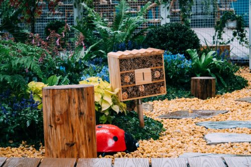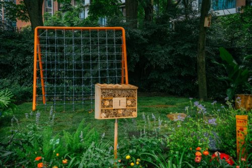 大学城社区则把一片林下闲置角落变成了“虫语共生花园”。在共建活动中,大学生志愿者与社区小朋友一起拼接木材、钻孔填草、安置“昆虫旅馆”,还为各类昆虫布置了“客房”。