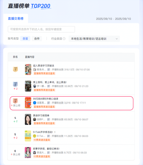 活动上线当日,视频号小店直播3小时内订单量突破百单,抖音直播间更是一举冲上当日教育品类榜单第三名。