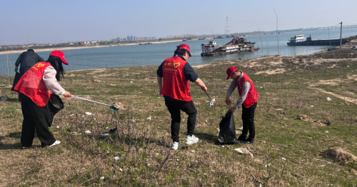 公司员工集体奔赴河滩,河滩紧连长江,是此次活动的重点清理区域。大家迅速分散开来,有条不紊地对河道周边垃圾进行清理。在清理过程中,员工们充分展现出不怕脏、不怕累的精神风貌。有的手持垃圾袋,仔细地捡拾着河滩上的各类垃圾,从食品包装袋到废弃塑料瓶,从白色泡沫到黑色尼龙片,不放过任何一点垃圾,不留任何死角;有的则两人一组,合力将装满垃圾的垃圾袋转运到指定点位集中收纳。身着的小红帽与红背心在阳光下格外醒目,构成了一道亮丽的风景线。
