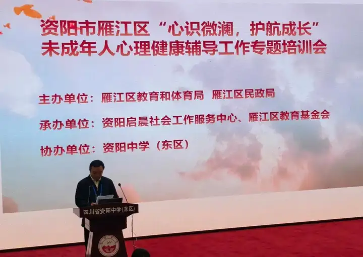 为深入贯彻国家关于未成年人心理健康教育的重要指示精神,积极响应教育部对中小学心理健康教育工作的相关部署,全面提升资阳市雁江区中小学心理健康教育质量,增强教师群体对学生心理健康问题的精准识别与有效干预能力。2025年4月16日,由资阳市雁江区民政局主办,资阳启晨社会工作服务中心承办的 “为你而来相伴成长” 儿童关爱保护项目之 “心识微澜,护航成长” 特殊儿童圈层能力培训活动,于资阳中学(东区)盛大举行。
