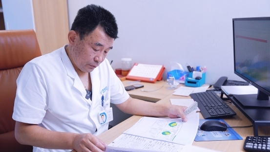 近视手术专家谢冰院长术前仔细查阅患者眼部检查数据