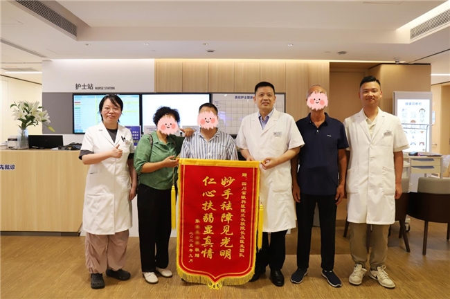 复查那天,张先生左眼的视力已经从仅存光感恢复到了正常视物水平。父母特意定制了一面锦旗,郑重地交到兰长骏院长手中。锦旗上金灿灿的大字,熠熠生辉,不仅是对医者精湛医术的感谢,更是对全体医护人员用爱心和耐心化解特殊患者恐惧的由衷感激。
