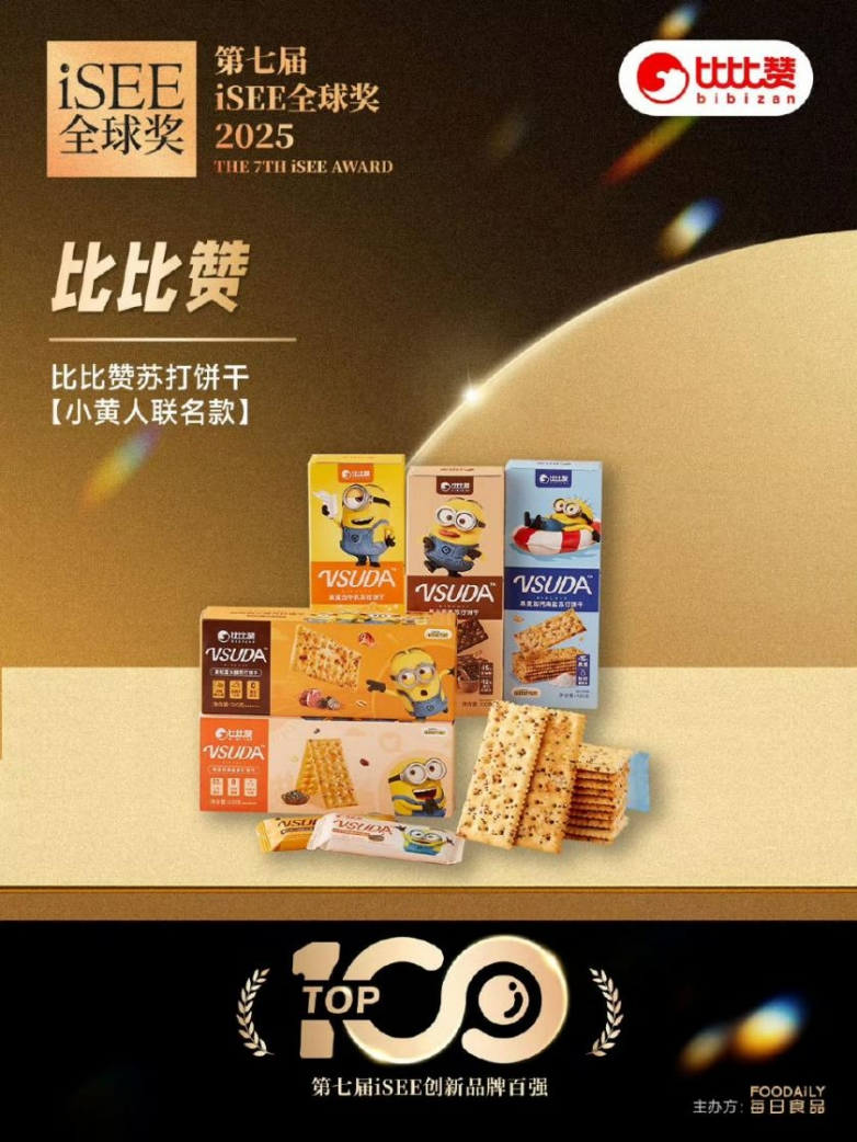 通过这场深度合作,并在原料、工艺、包装上创新,比比赞不仅为零食注入更多活力和价值,更凭借其出色的产品力荣获“第七届iSEE创新品牌百强”荣誉。