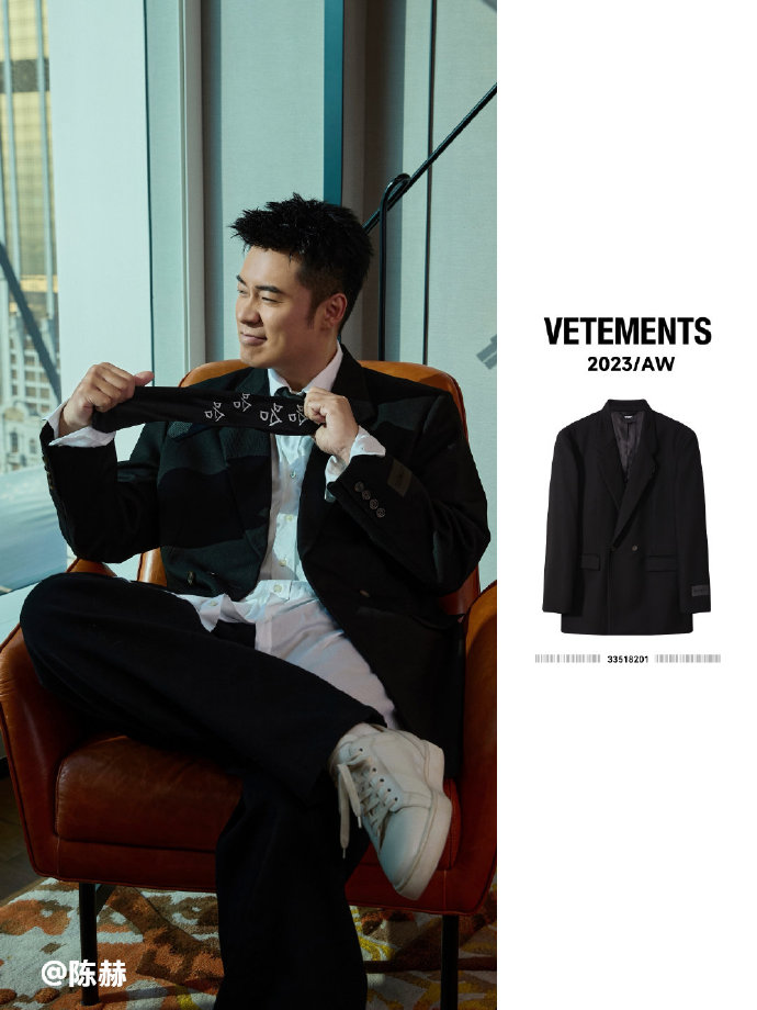 而说到综艺穿搭常胜将军,@陈赫 不仅在《五哈》中身着VETEMENTS西装外套,而且他的衣橱恐怕早已被英国VETEMENTS“攻陷”。从机场街拍到节目内场,从叠穿卫衣到机能风外套,VETEMENTS几乎承包了“赤赤哥”的风格半壁江山。不是盲目上身,而是灵魂契合——随性、带感、不刻意,正中潮牌核心命门。