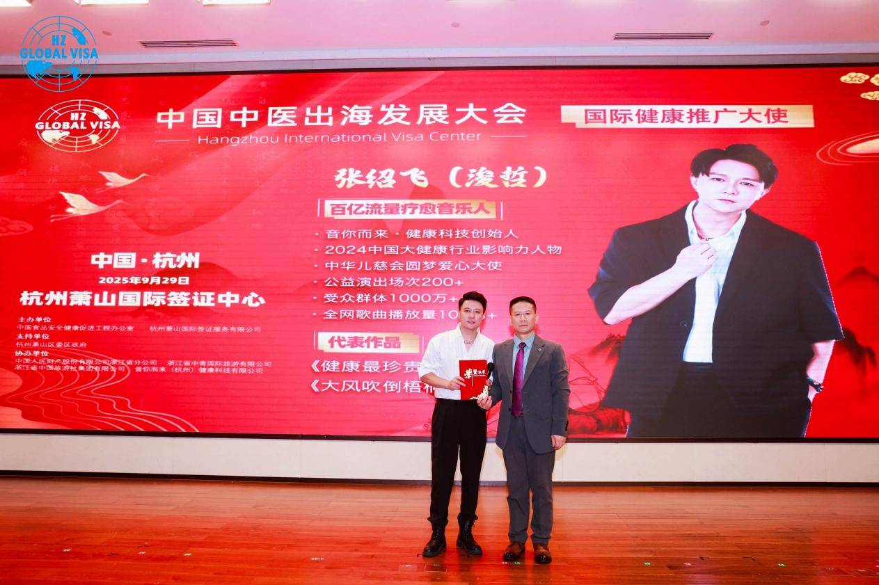 9月29日,由中国食品安全健康促进工程办公室与杭州萧山国际签证服务有限公司共同主办的“中国中医出海发展大会暨杭州萧山国际签证中心启动仪式”在杭州萧山隆重召开。大会围绕“推动中医更好、更深融入世界,参与全球健康治理,增进全人类健康福祉”展开深入交流,吸引了近300位嘉宾参与,其中包括政府机构、驻华使领馆、演艺明星及国际组织代表,以及中医药企业、金融机构、旅游企业和新闻媒体界的代表。其中,著名影视导演张纪中、水木年华组合歌手卢庚戌、《健康最珍贵》原唱歌手张绍飞等代表演艺界受邀出席,共同为中国中医出海发展大会的公益推广贡献力量。
