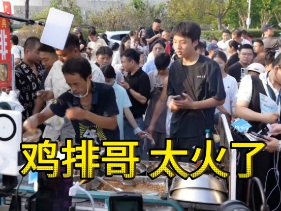 景德镇近日网络爆火的“鸡排哥”李俊永摊位前排起了长龙